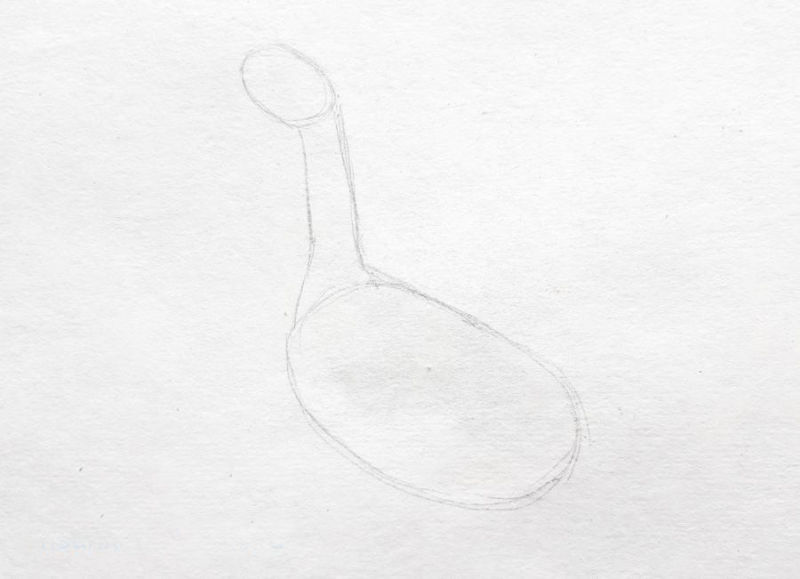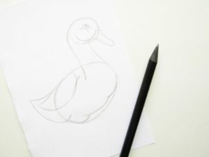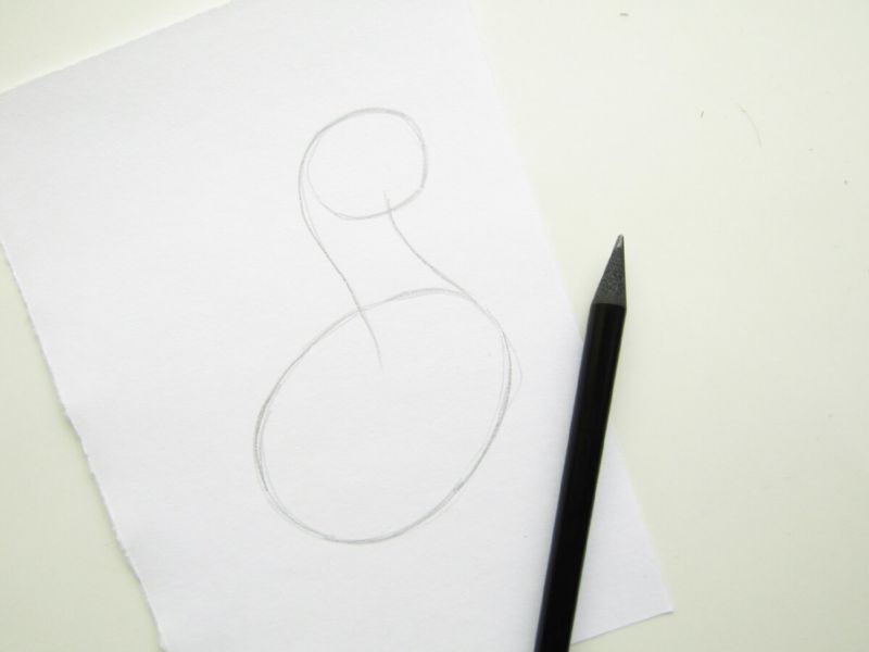 - Първо се начертават два кръга, като долният се разтяга леко по хоризонталната линия. След това тези фигури са свързани с продълговати тънки линии, които вече ясно проследяват контурите на гъшата шия.
