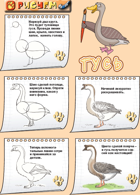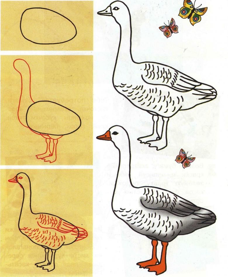 Как да нарисуваме гъска: стъпка по стъпка рисуване и живопис за начинаещи и деца