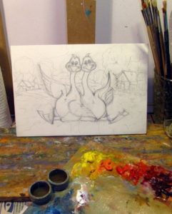Рисуване на малката гъска от анимационния филм "Две весели гъски