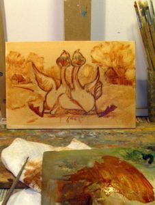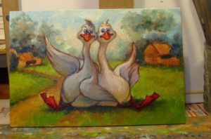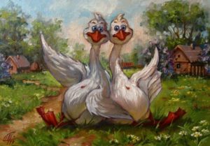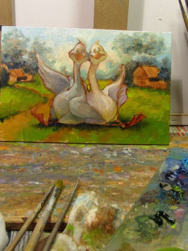Рисуване на гъска и гугутки
