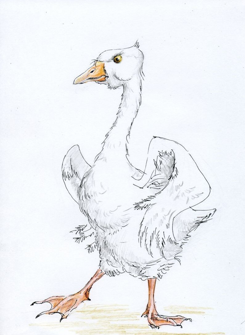 - Всички пропорции на тялото трябва да се рисуват с по-ниско разположени шия и торс на гъската.