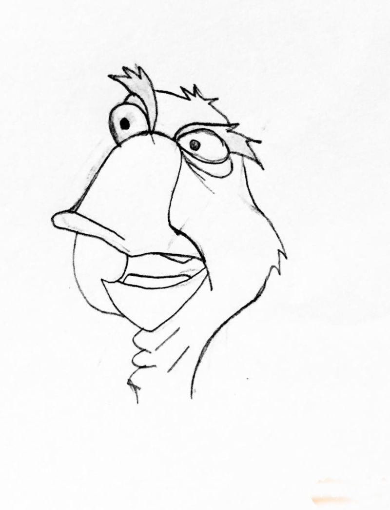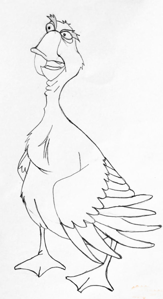 - Нарисувайте главата на птицата с човка, а след това и грациозната шия.