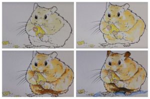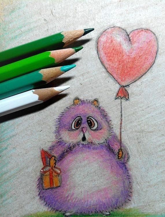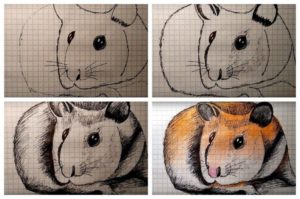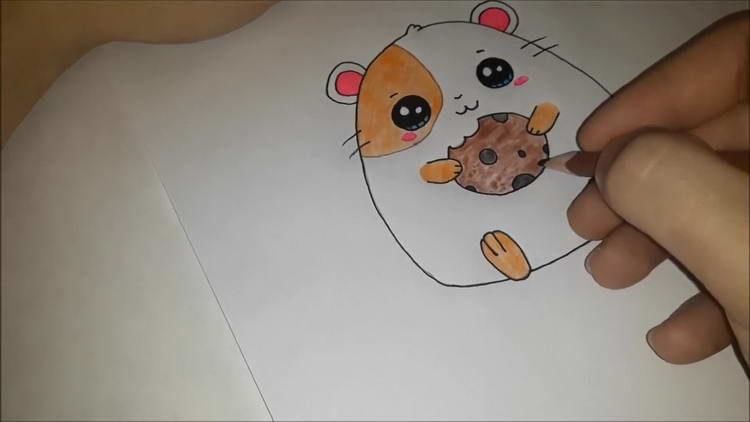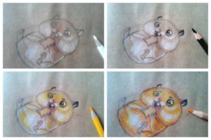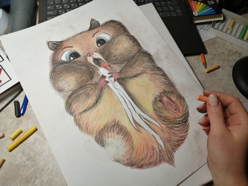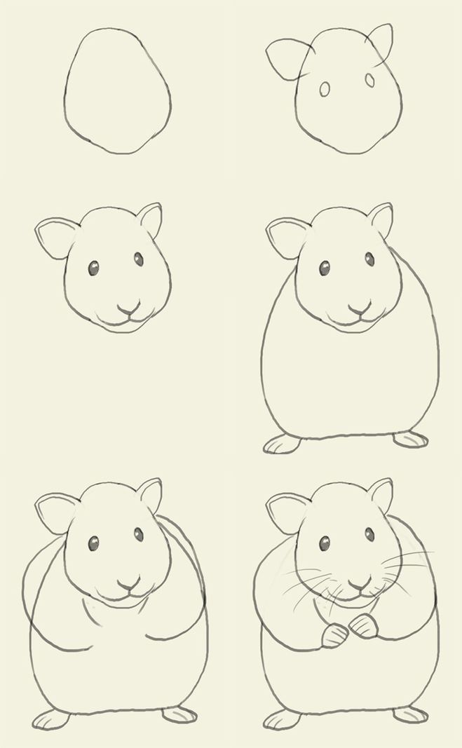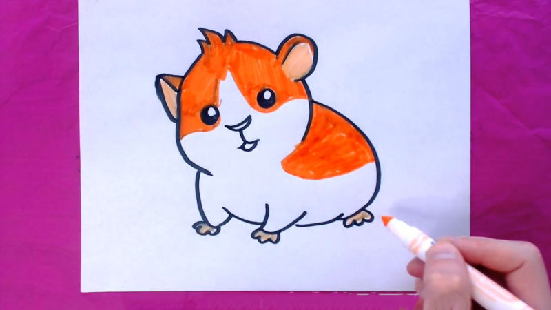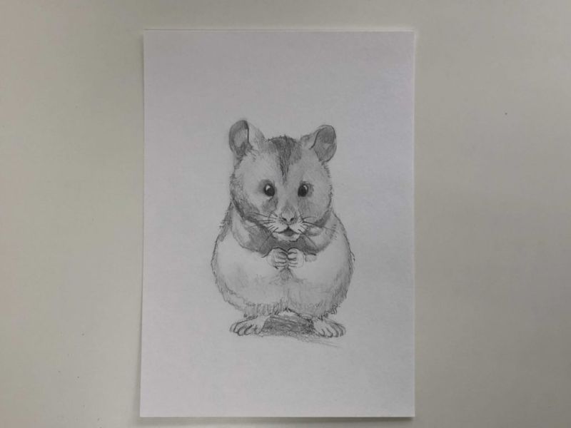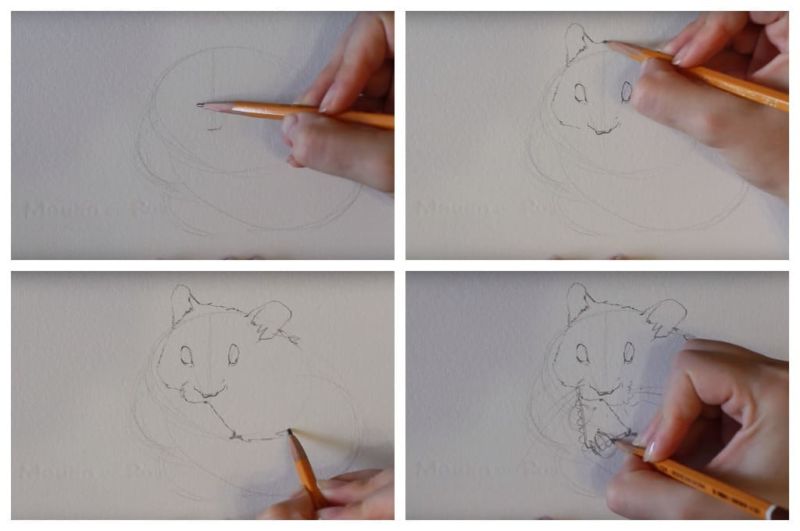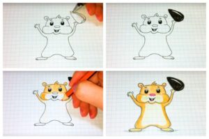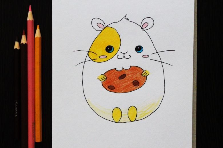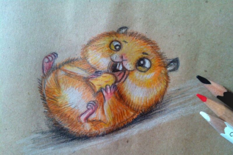 Първоначално хамстерът ще бъде нарисуван с молив, а след това оцветен с цветни моливи:
