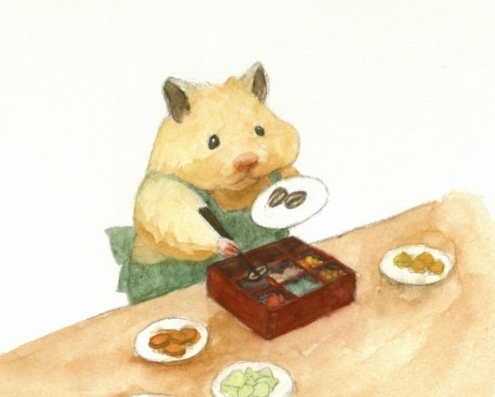 - За разнообразие и оцветяване е необходимо да поставите семе в краче, тъй като гризачите имат най-голям апетит за семена. Контурът на семето е нарисуван в лявото повдигнато стъпало и след това е детайлизиран чрез добавяне на бяла черта и кафява ивица в основата.