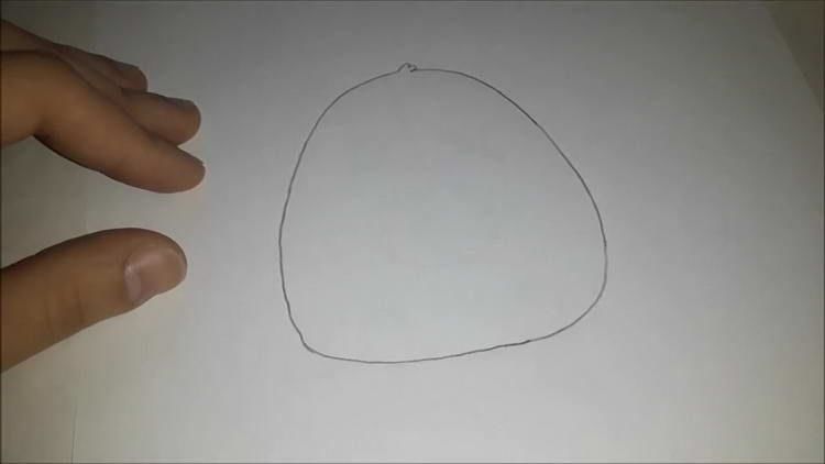 - Сега, като се спуснете надолу и засегнете долната част на главата, нарисувайте голям хоризонтален овал. Това ще бъде торсът. Веднага можете да започнете да очертавате външния контур на вълненото тяло, като го правите със зигзагообразни линии.