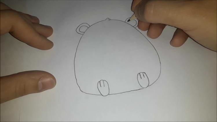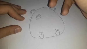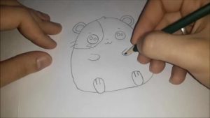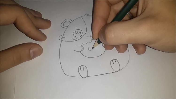 - Точно под долната част на бузите или дори допирайки се до линията им, лапите се рисуват повдигнати надолу. За да нарисувате правилно лапите, трябва да сте запознати с анатомията на краката на хамстера. За да направите това, просто намерете подходящата снимка в интернет.