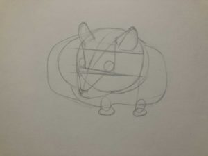 - В основата на главата има кръг. Върху кръга можете веднага да нарисувате уши с полуовална форма. От външната страна на главата можете веднага да маркирате козината и парчетата кожа, които са повдигнати с взрив.