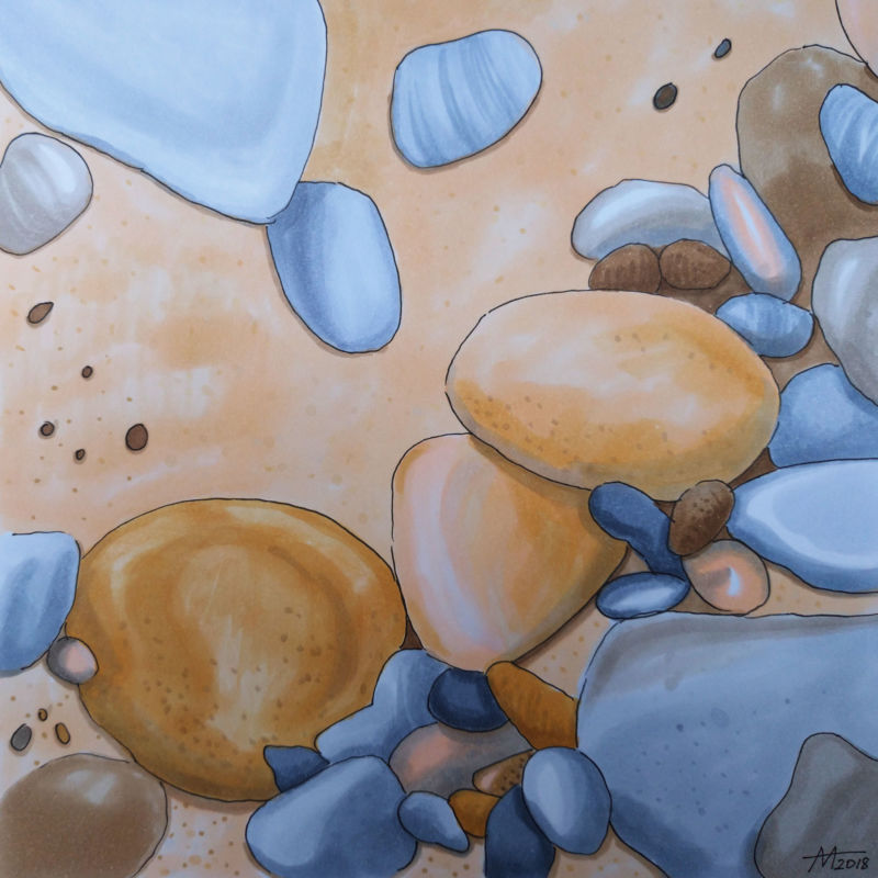 За по-младите начинаещи задачите на свободна тема могат да се съчетаят с обучение за правилно представяне на формите на различните видове камъни. Първоначално децата биха се заинтересували от изобразяването на морския бряг с цветни камъчета или скали, в които се разбиват вълните.