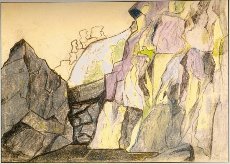 Преди да започнете да рисувате обемен камък с молив, можете да разгледате добре репродукции от известни картини с приказни сюжети, където на преден план са представени големи камъни.