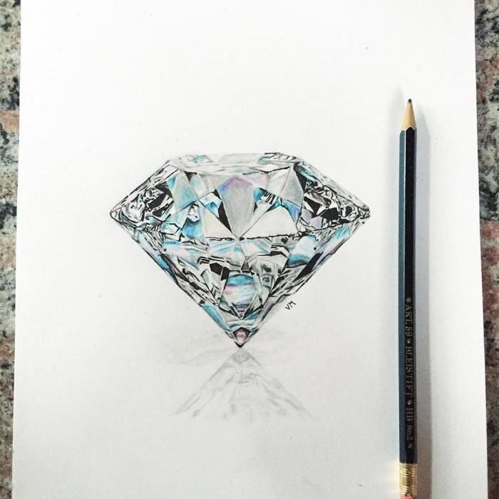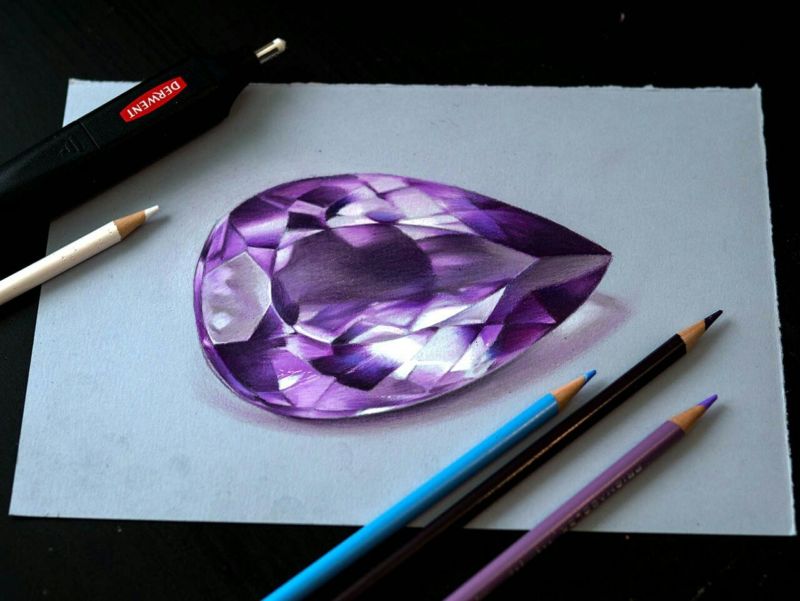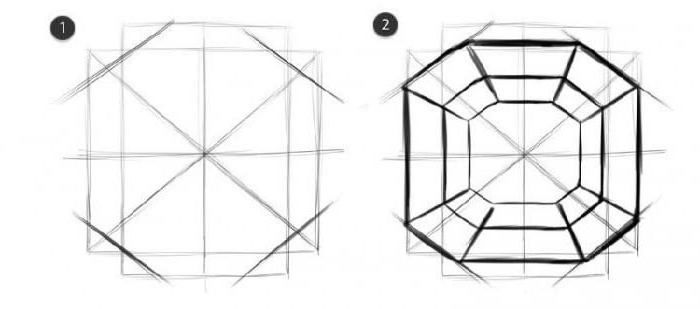 Съществува специфичен подход за рисуване на скъпоценни камъни, които са изработени в строга шлифовка, като диамант или учебен камък. Молив, линийка, гума за изтриване на ненужните линии и хартия за рисуване са от съществено значение.