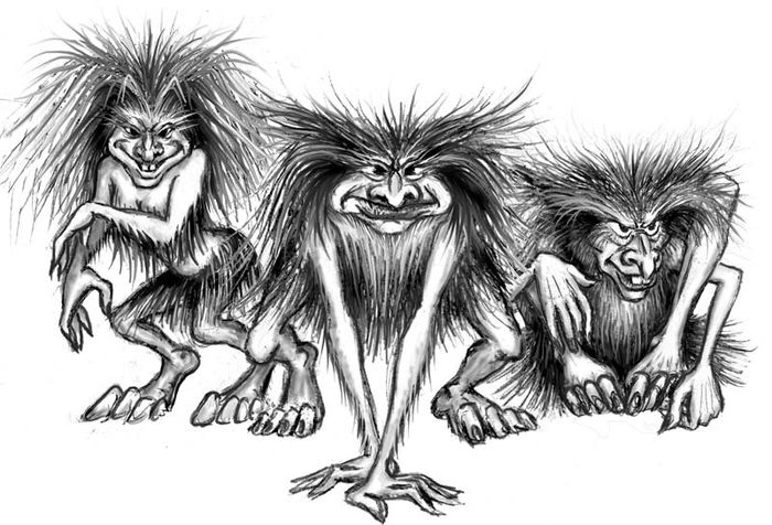 Можете да нарисувате кикимора, без да се стараете прекалено много, по-бързо, отколкото в предишния пример. В този случай ученик в началното училище, гимназист, възрастен, който не може да го нарисува, ще се справи с първия опит.