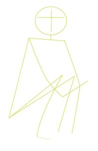 - Необходимо е да се начертае трапец без широка основа, като една от страните му е почти удвоена. Това ще бъде торсът. По-дългата страна на трапеца е линията на гърба, а по-късата страна показва къде ще бъде линията на предмишницата на едно от рамената.