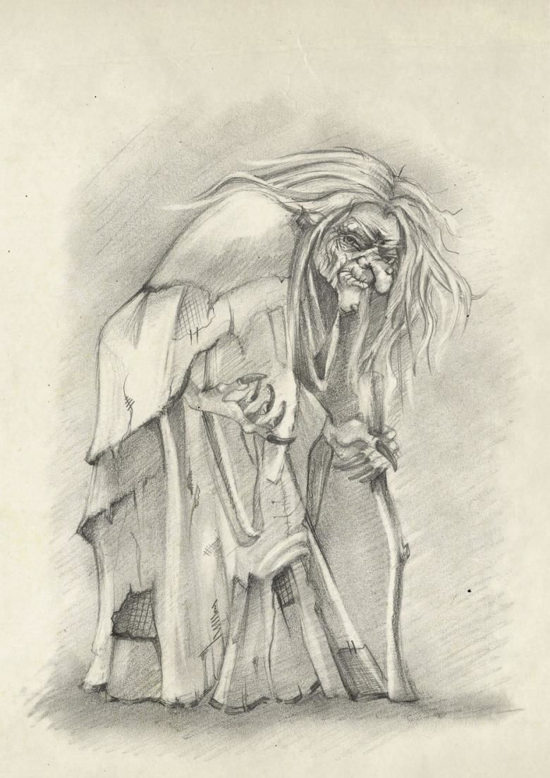Колкото повече се приближава към целта си, толкова по-млада изглежда, но дори когато започва пътуването си, може да има радостно изражение на лицето, да бърза и да се изчервява, да се смее със злобен смях в очакване на срещата с враговете си.