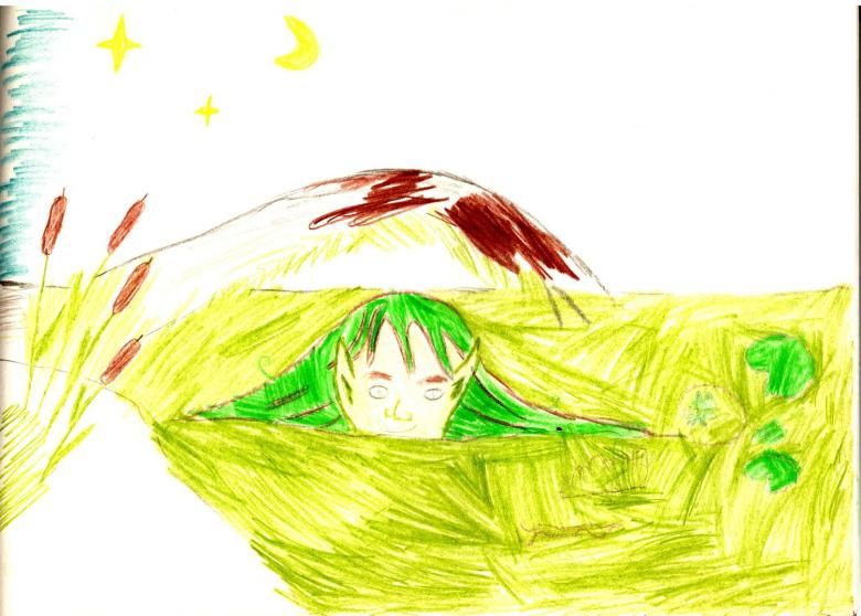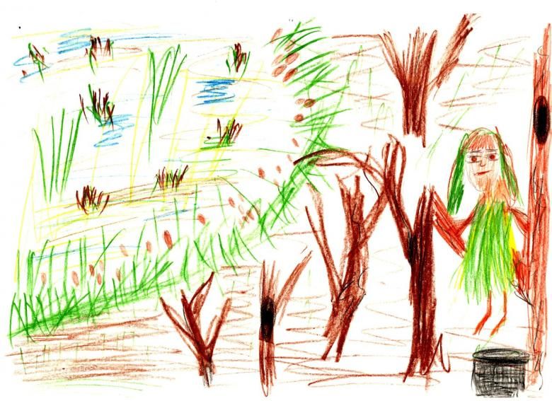 - Дърветата трябва да бъдат нарисувани зад кикимората, като наоколо има неравности. Тя може да стои на брега или в средата на блатисто езеро.