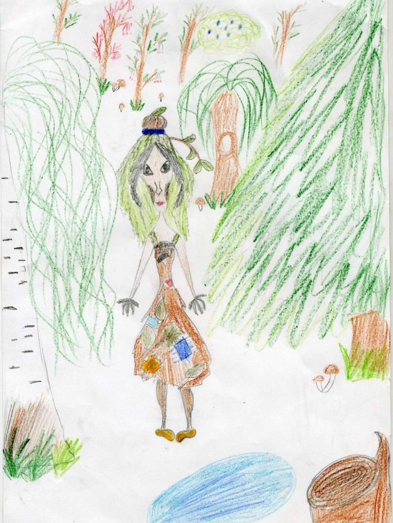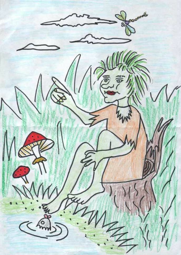 На пръв поглед трудна за рисуване от деца, рисунката "Кикимора, седнала на брега" ще бъде лесна за изпълнение, ако се придържате към следния план: