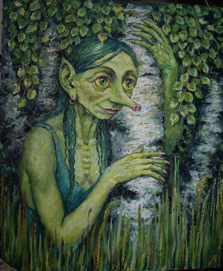 За да изобразите блатна кикимора, трябва да използвате зелени моливи и бои, някои в различни нюанси. Затова е по-добре да изберете не моливи, а маслени бои. Те са лесни за смесване. Можете да създадете всеки нюанс за миг.