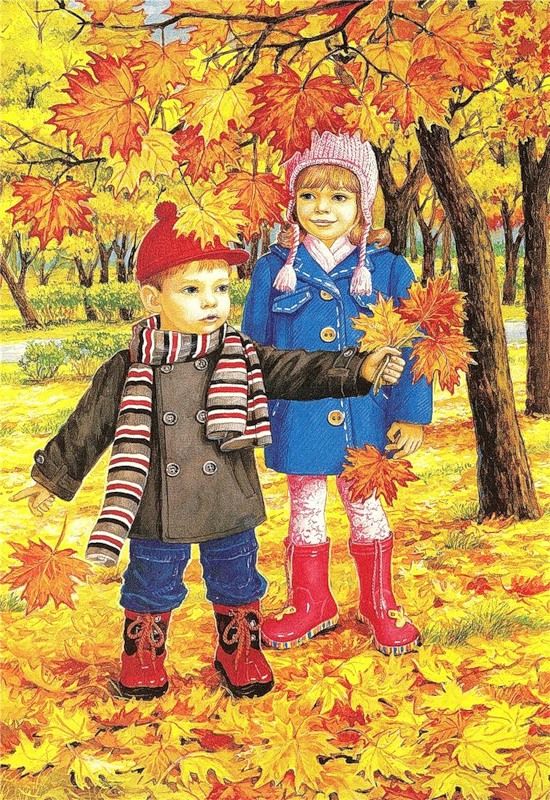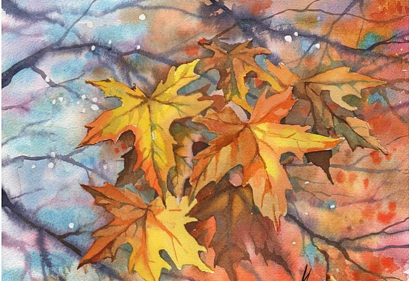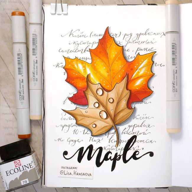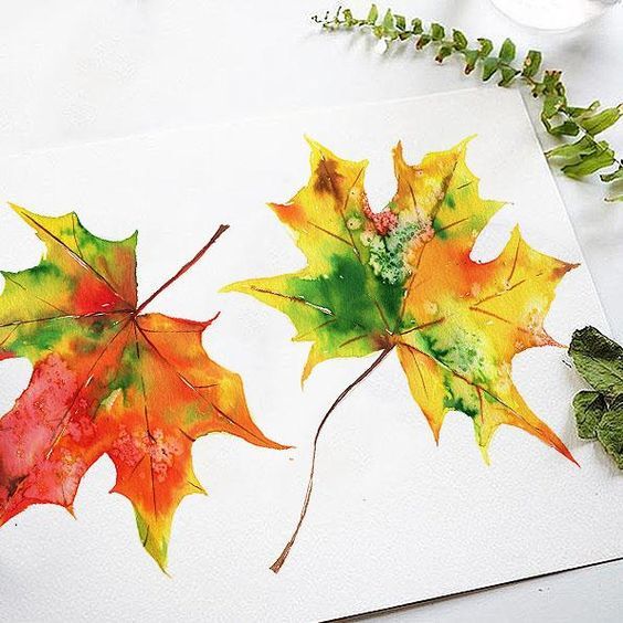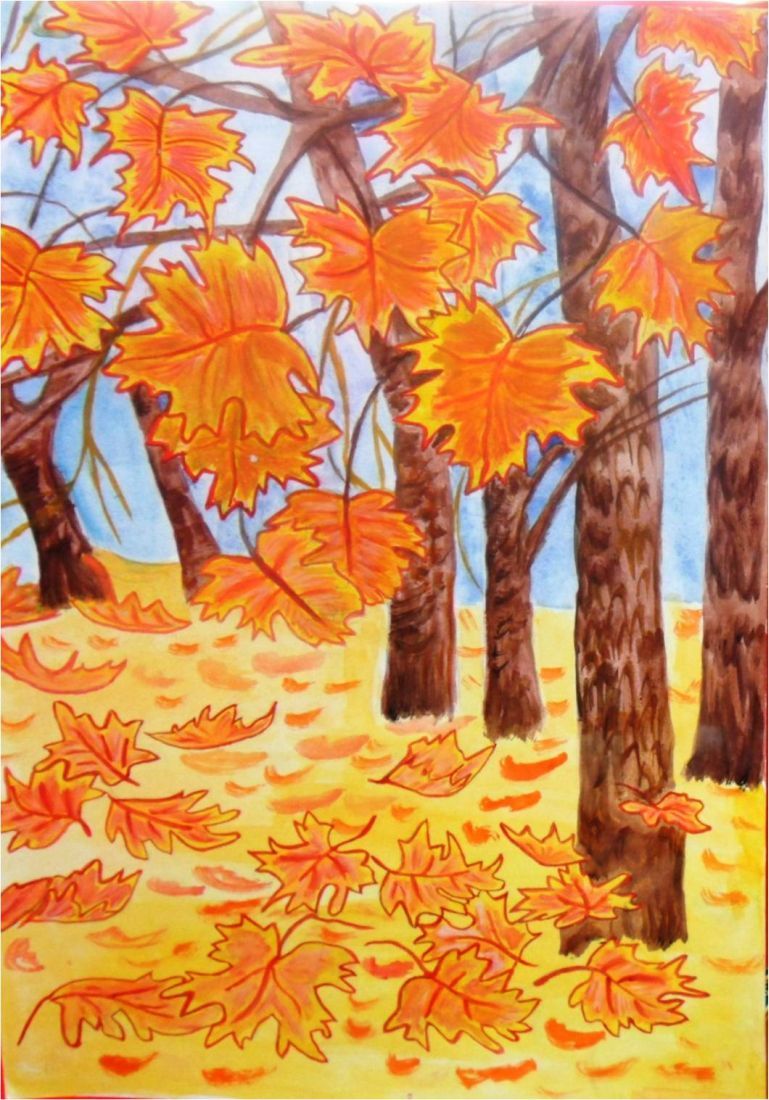 Есенните листа са оцветени в богати, разноцветни нюанси, затова в училище, в часовете по рисуване, на децата често се възлагат рисунки на кленови листа или композиции с тях.
