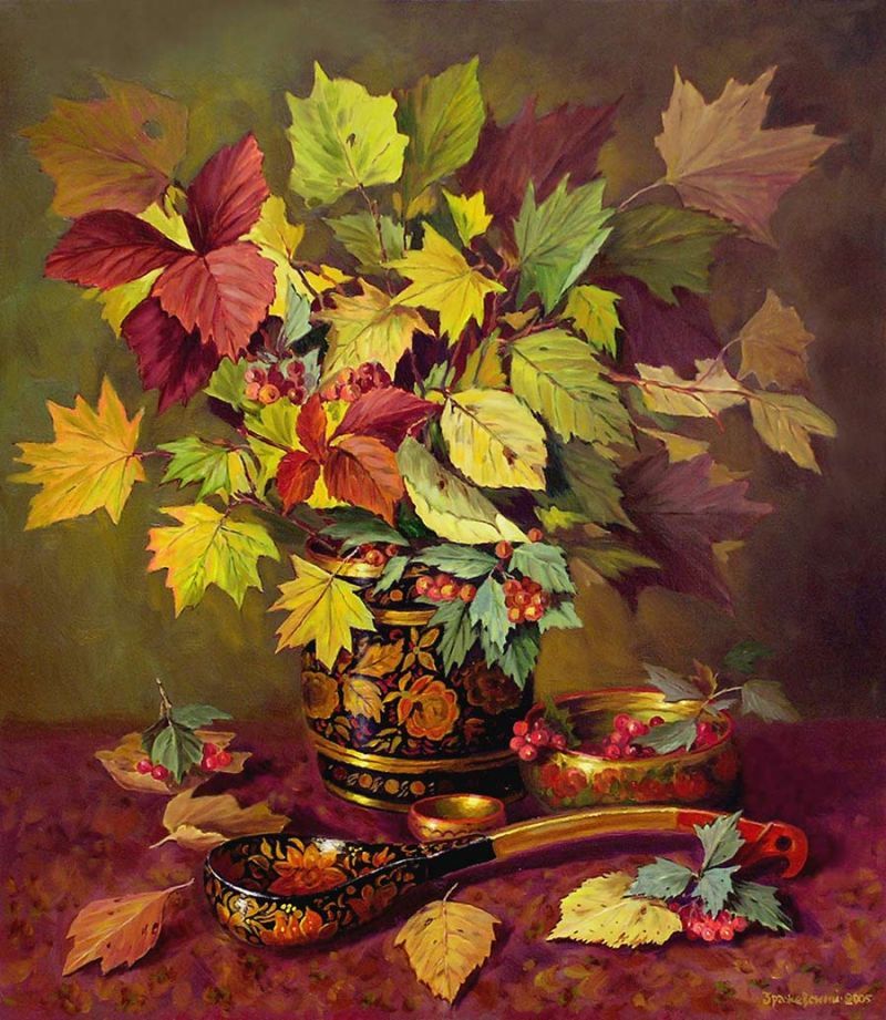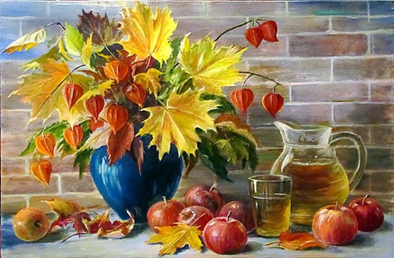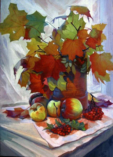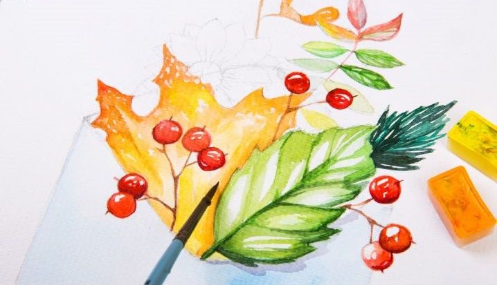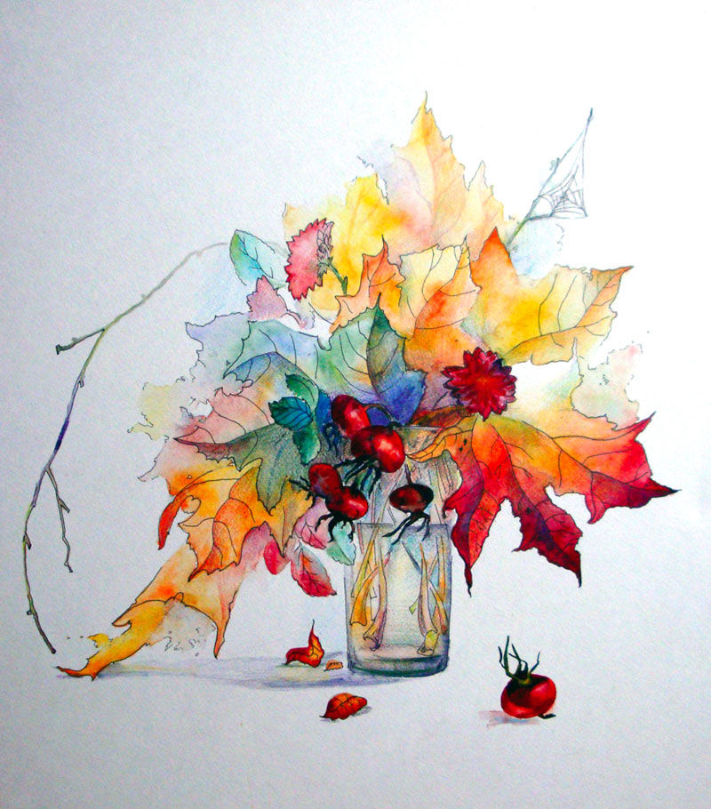 След като поставите пред себе си есенен букет от кленови листа, трябва да започнете с предварително маркиране на всички обекти, присъстващи в композицията на натюрморта.