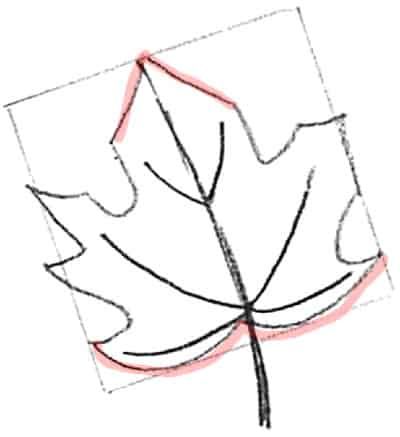 Контурът трябва да бъде очертан с неправилна, "жива" линия, тъй като всеки лист в природата има свой собствен размер и особености на конфигурацията, като в същото време се вписва в определен модел, характерен за конкретния дървесен вид.