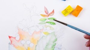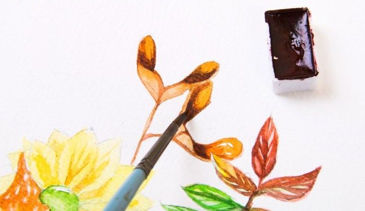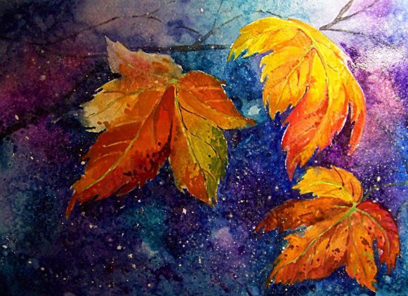 Могат да се използват оранжев, червен и жълт цвят. Листата на заден план трябва да са по-приглушени и да се различават помежду си не само по форма, но и по цвят. Едно от листата може да е зеленикаво, едно чисто жълто и едно червеникаво.