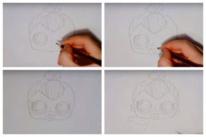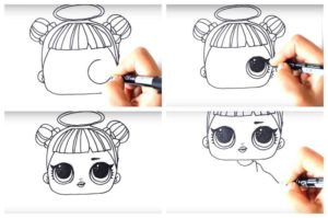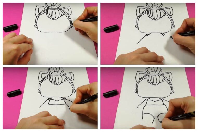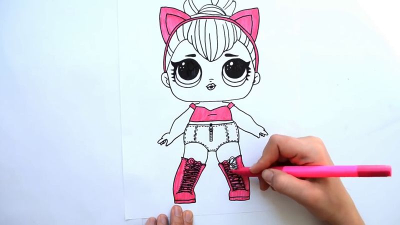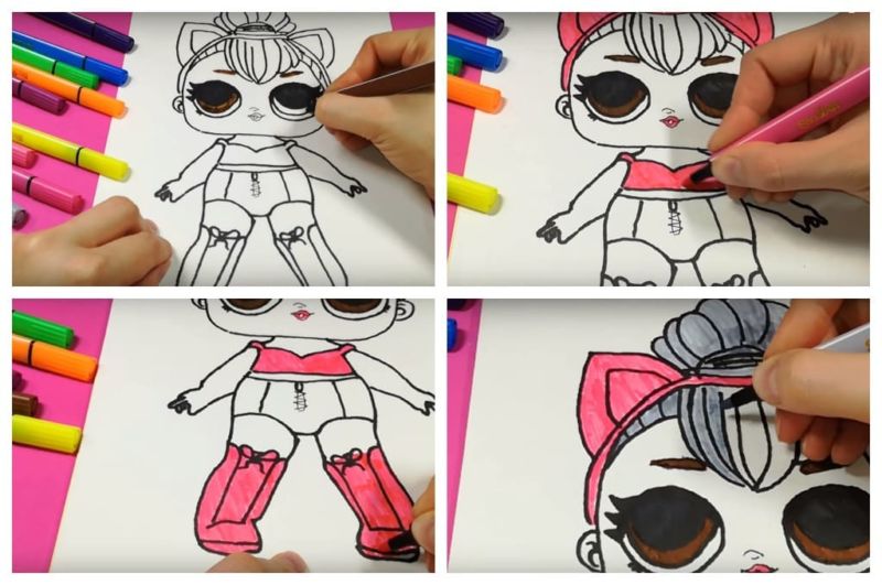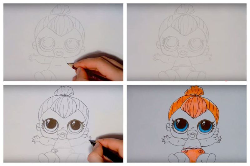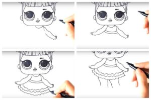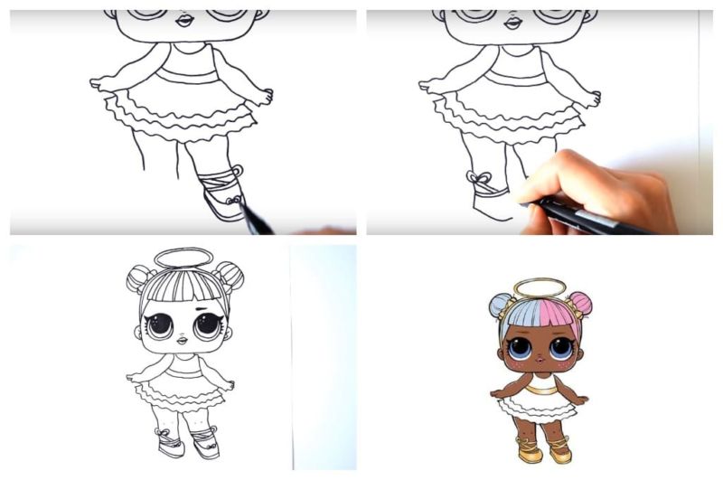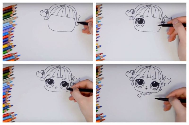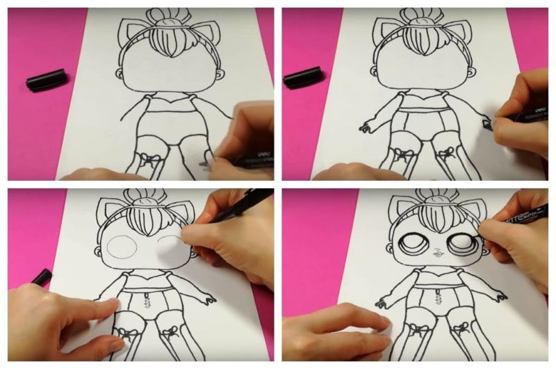 Ако детето лесно се справи с първия вариант, няма да му е трудно да изобрази втория, по-сложен вариант на кукла LOL: