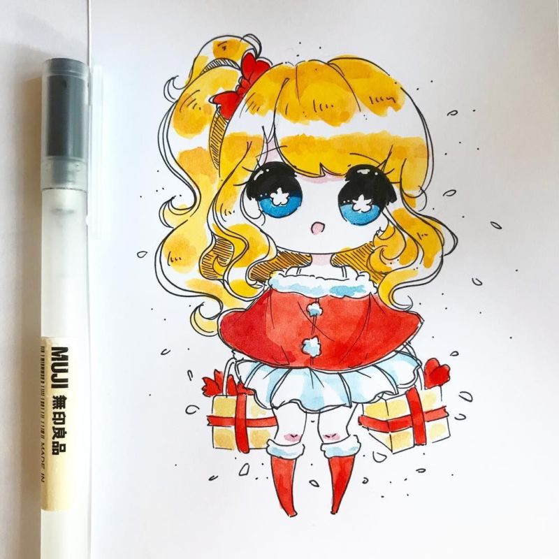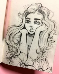 - Готова скица! След това обходете контура на творбата с черна писалка и започнете да рисувате върху рисунката.