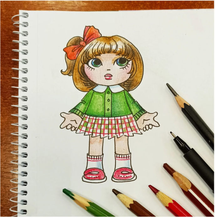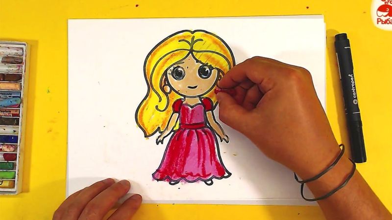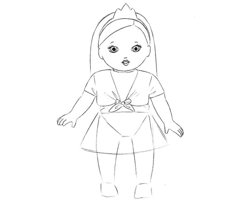 Повечето момиченца обичат да играят с кукли и всяко от тях има една любима, която е постоянно с него. Рисуването на кукла е лесно и просто както с моливи, така и с бои.