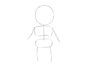 - След главата се рисува тялото. Овалът на тялото трябва леко да се припокрива с овала на главата.