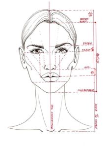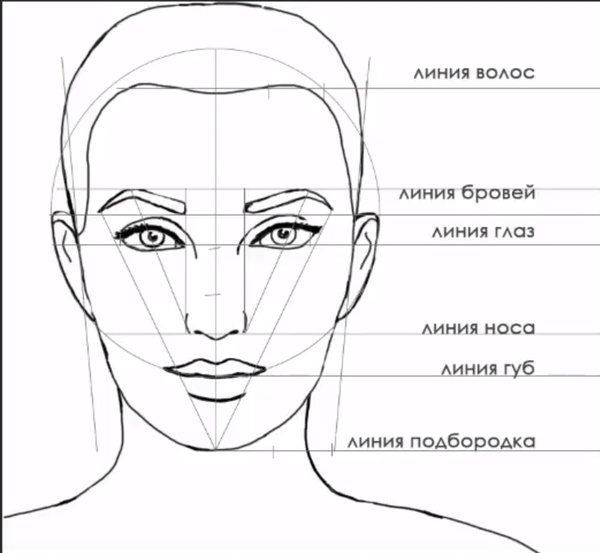 За да се създаде правилно модел, лицето трябва да се раздели хоризонтално. Трябва да има 3 и половина секции. Горната част показва линията на косата, средната част е за веждите, а долната - за върха на носа. Разстоянието между косъмчетата и веждите е равно на височината на челото.