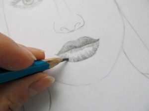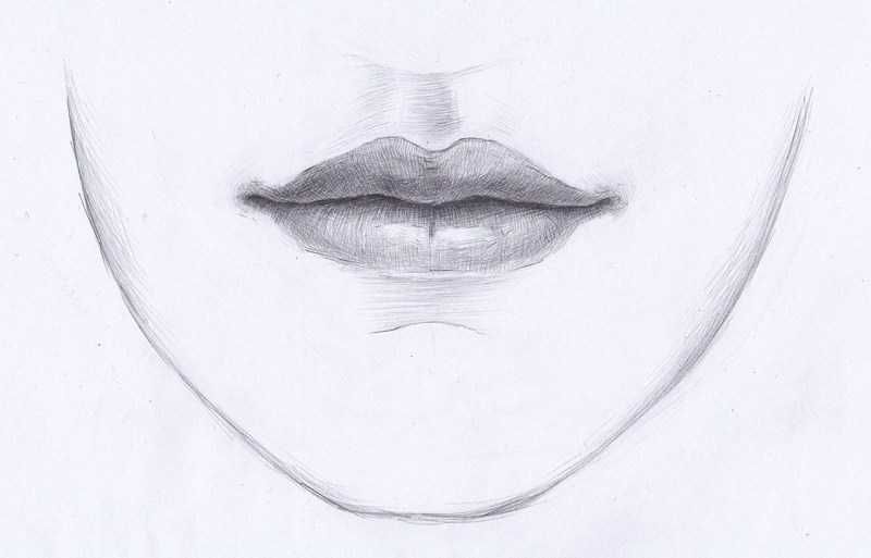 - устната, която е отгоре, се вижда по целия път надолу. Ако художникът скицира цялото си лице, устните не се виждат напълно;