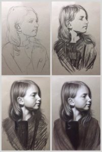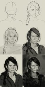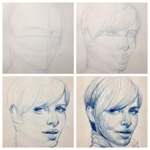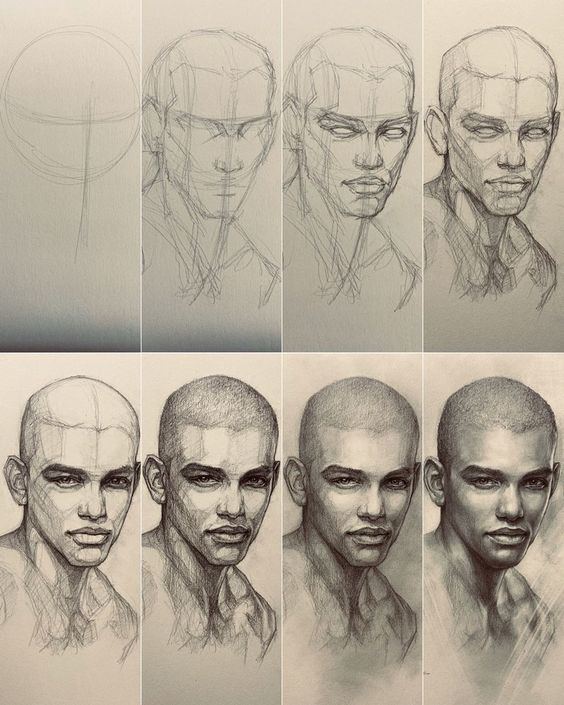 След като художникът начертае пропорциите, лицето може да придобие чертите на определени хора. Това е последният етап.