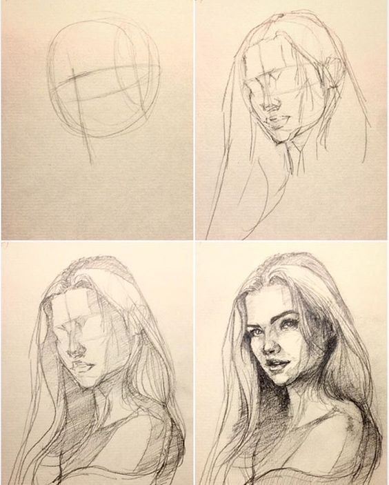 В началото е необходимо да се нарисуват части от лицето почти мигновено и без усилие. Не е необходимо да рисувате всичко в детайли. Всички линии трябва да са лесни за рисуване. Неправилните линии и щрихи могат да бъдат поправени по-късно.