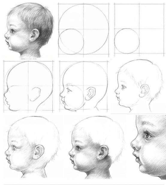 - Ако изобразеният човек се обърне в профил, се виждат очните ябълки и устните, а линията на шията се съединява с линията на брадичката. Хората, които гледат рисунката, трябва да могат да видят частта от бузата, която покрива крилото на носа.