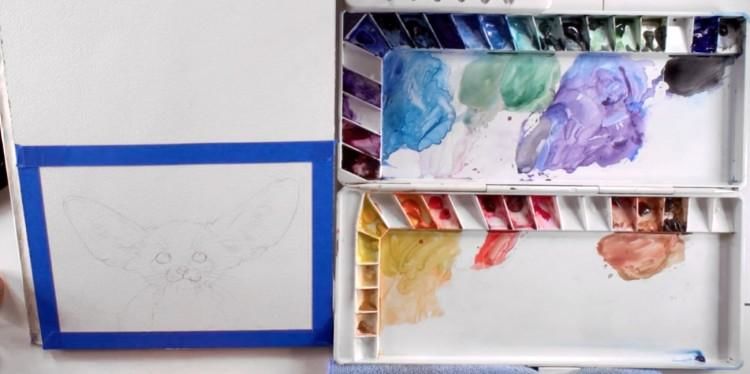Кафявият цвят боядисва ушите отвън. Рисунката е готова!