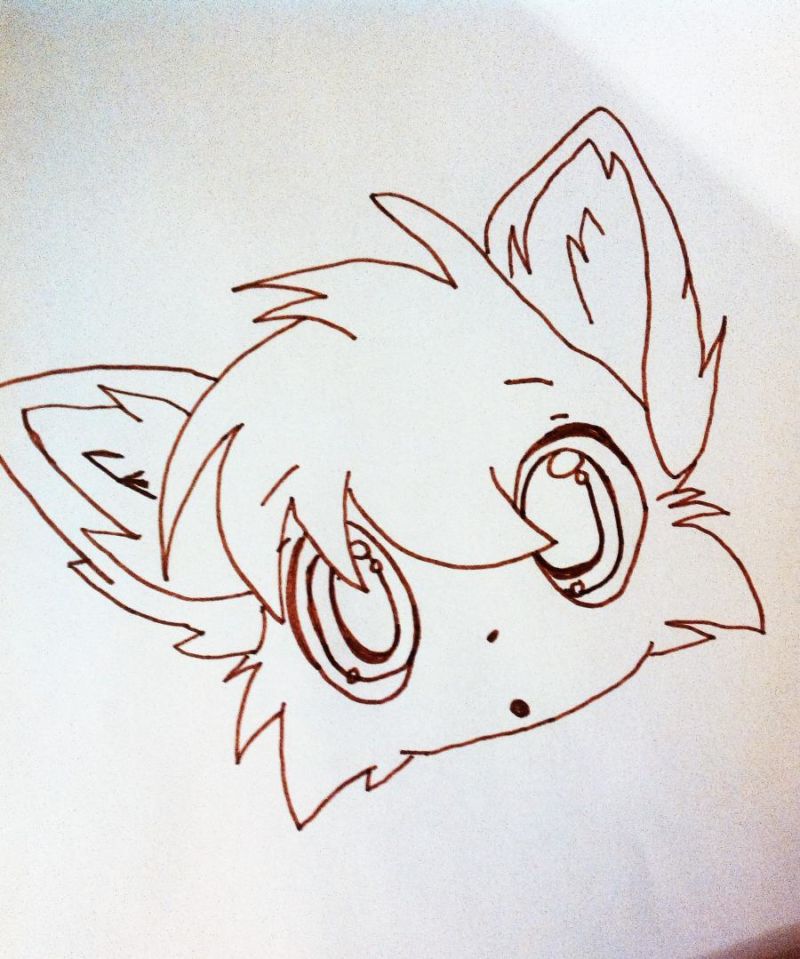 - Вземаме маркер или шрайпер. Около ушите и муцуната се правят удари, за да се получи палто. В ушите направете тъмни удари. С тези движения нанасяйте и настилка върху торса, опашката и лапите.