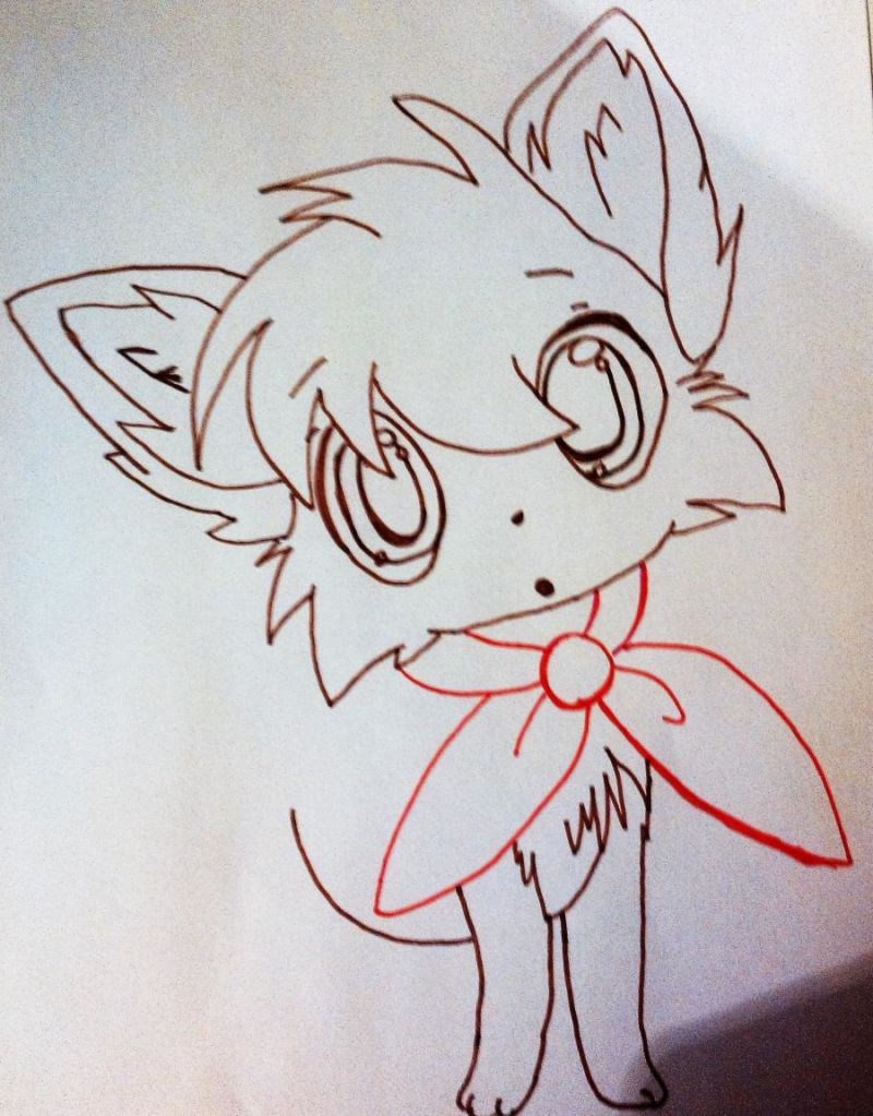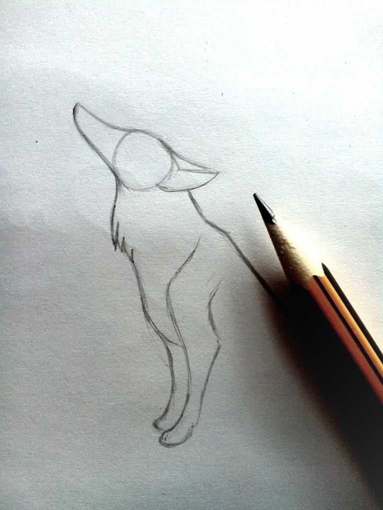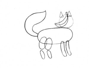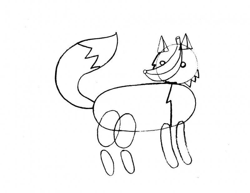 - Начертайте два тънки крака, всеки с широчина един сантиметър. И опашка, която увива около себе си, за лисицата. Да преминем към лисицата. Най-напред главата, която заема половината от овала, изобразена е като кръг и отстъпва на половин сантиметър от върха на овала.
