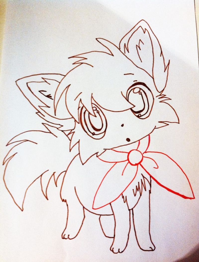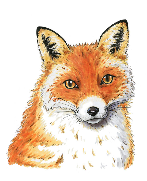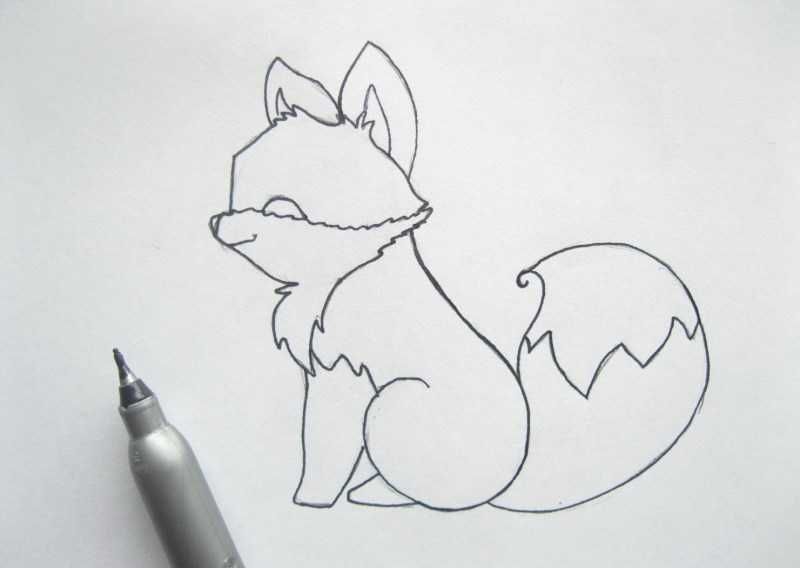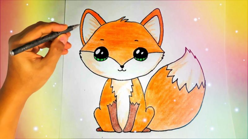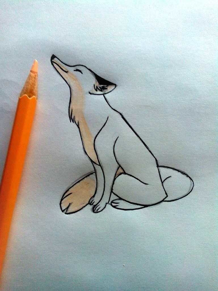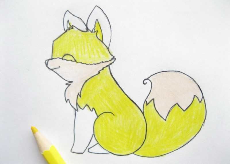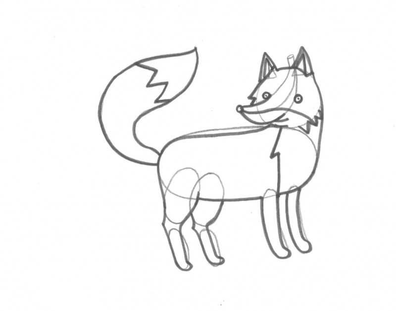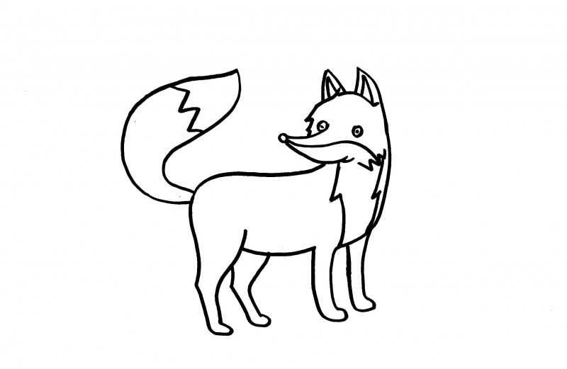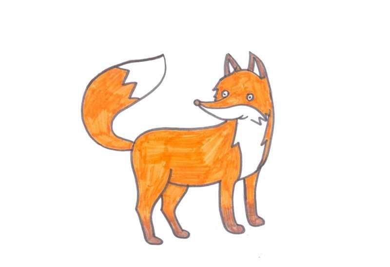 - Изтрийте всички ненужни линии и преминете към оцветяване на лисицата.