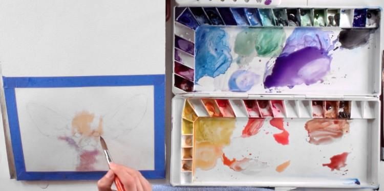 - Вземете палитра и смесете жълто с оранжево. Трябва да направите точното количество от тази боя. За да не се разсейвате и да смесвате цветовете отново.