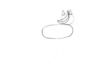 Това са два кръга, които имат наклонени триъгълници в горната си част. В "венчелистчето" рисуваме нос и усмихната уста. Носът ще има формата на триъгълник.