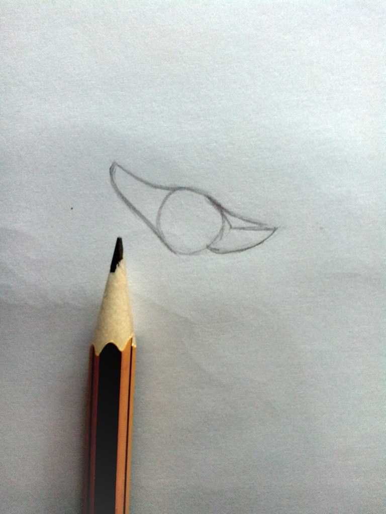 Направете същото и с левия овал, но линиите са насочени към лявата страна. Начертайте един голям кръг вътре в овалите и още един малко по-малък. Големият кръг на десния овал е по-близо до левия край на окото, а малкият кръг е вдясно и под овала.
