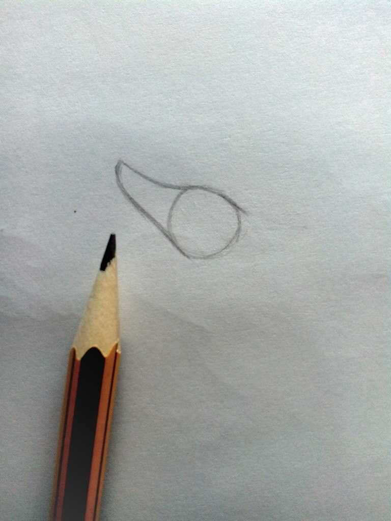 На лявото око големият кръг е вдясно от окото, а малкият - под него и вляво. Нарисувайте овала, без да докосвате двата кръга.