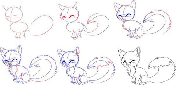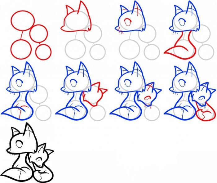 Статия за рисуване стъпка по стъпка на сладки лисички завършена.