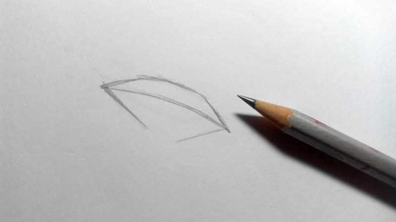 Поставете листа вертикално. Вземете молив и направете вдлъбнатина на около осем сантиметра отгоре и на три сантиметра отдясно. Започнете да рисувате овално листо (разположено хоризонтално). Начертайте линия в средата на листа (горната част трябва да е по-голяма от долната).
