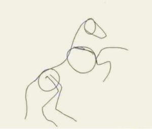 - Продължаваме с по-голяма дъга с извивка към другата страна. Това е устата на коня.