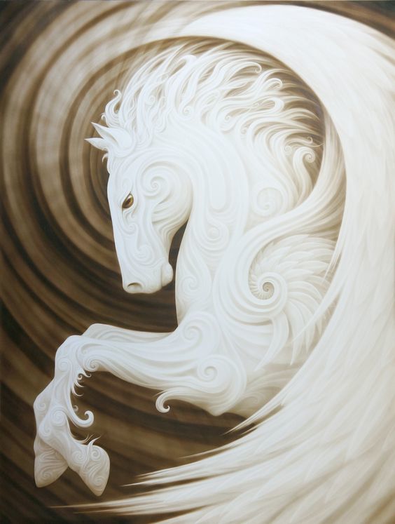 - В централната част на листа под формата на два кръга са изобразени очите на този приказен кон, които са разположени близо едно до друго.