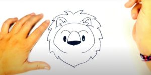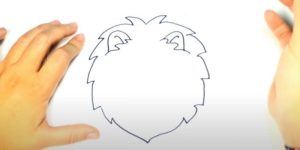 - Използвайте триъгълник, за да нарисувате носа си. Начертайте две ленти, които ще се простират от носа, така че да оформят устата на нашия лъв. Трябва да се появи усмивка.
