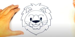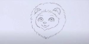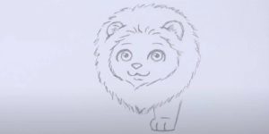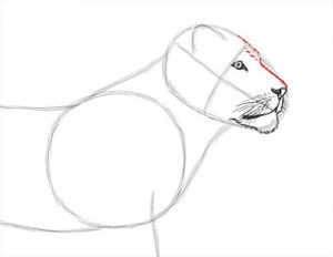 - Започнете да детайлизирате, така че ухото се появява в чертежа, а второто няма да се вижда, защото лъвът стои в профил.