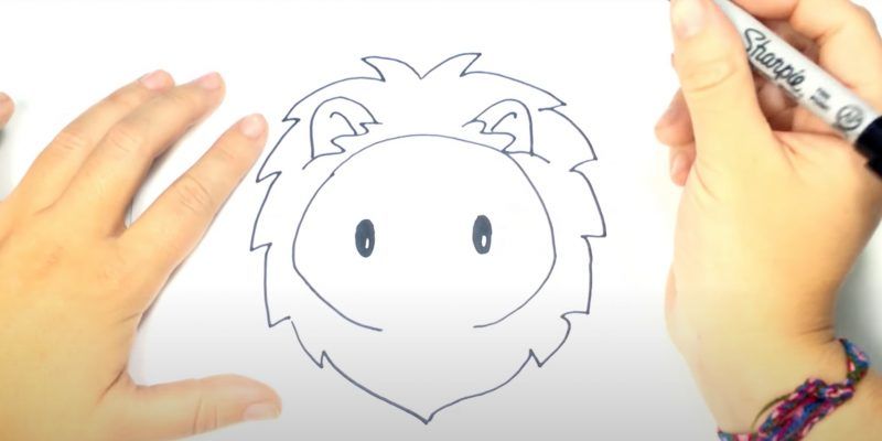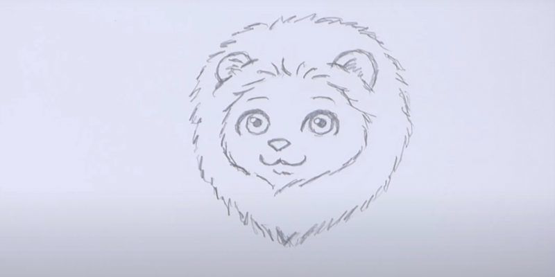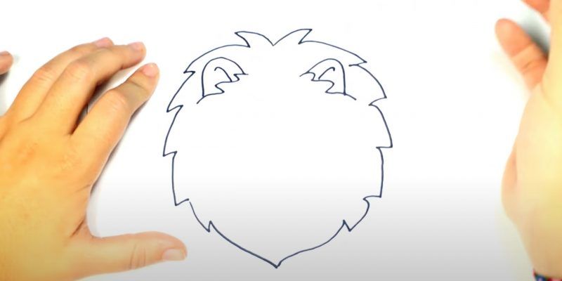 - Отдръпнете се на сантиметър и половина от ръба на главата и нарисувайте най-важната част - гъстата козина. Зигзагообразните щрихи в кръг представляват гривата.