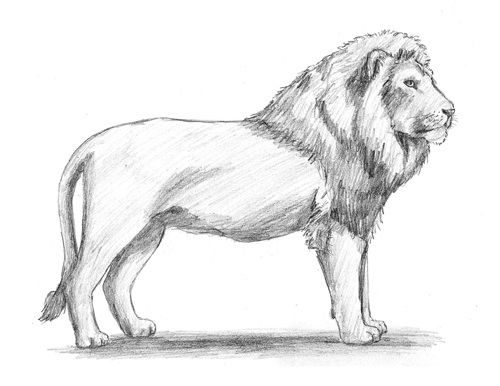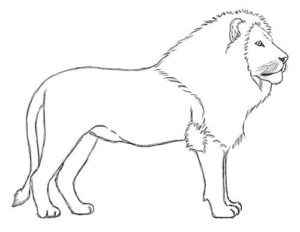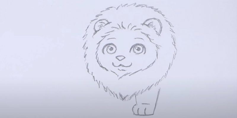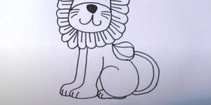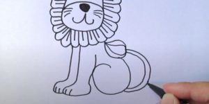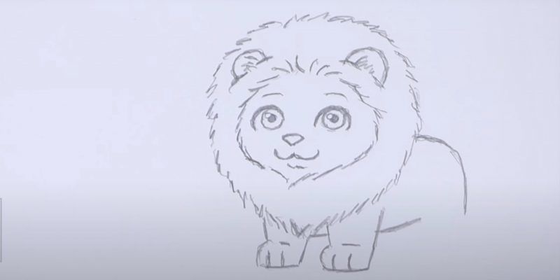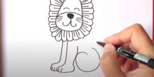 - С вълнообразна линия нарисувайте опашката на лъва, тя трябва да е тънка и с пухкава четка в края.