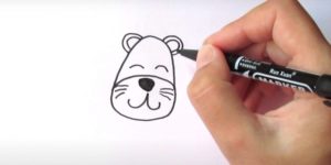 - В горната част на главата на животното начертайте хоризонтална линия, която да показва правилното положение на очите и разстоянието между тях.